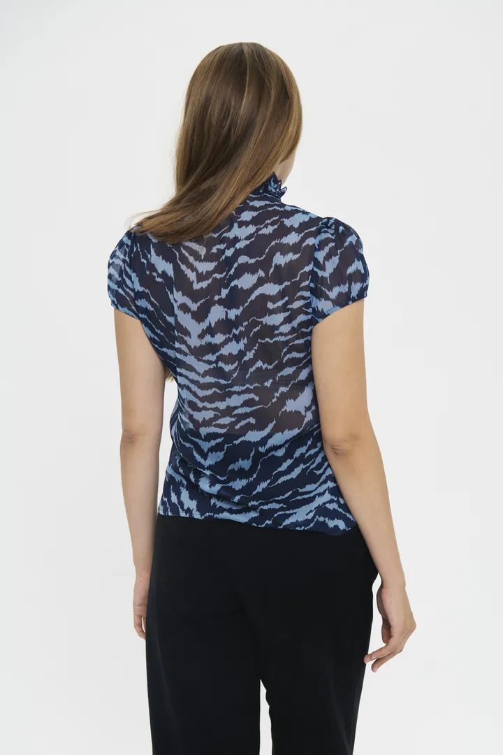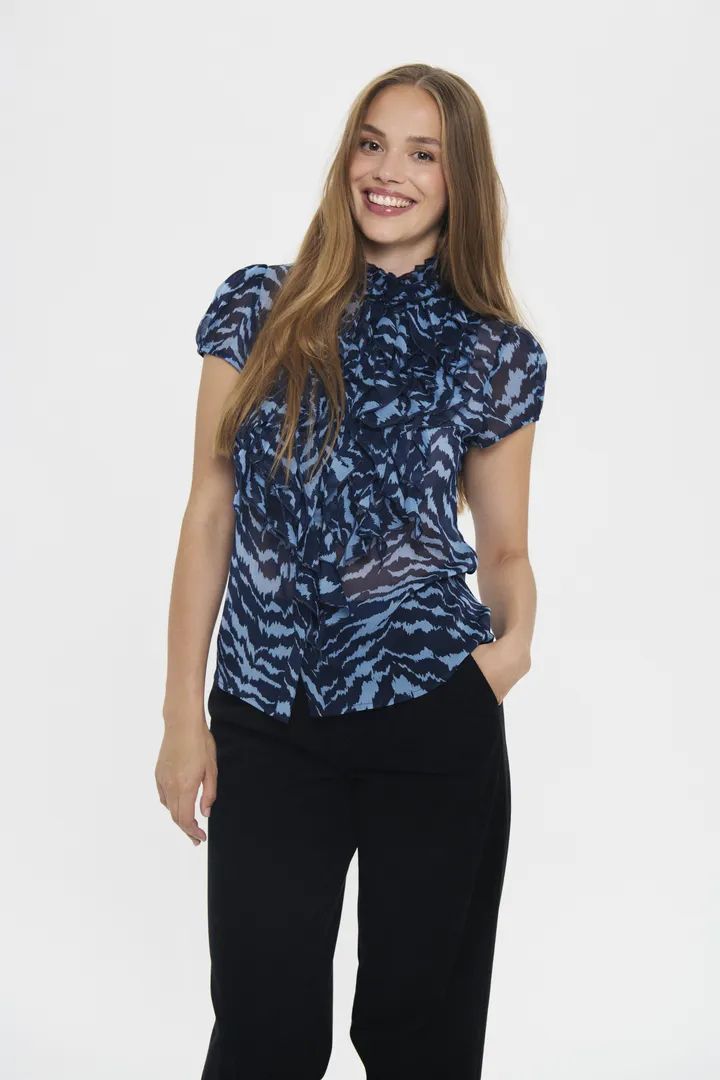 Lilja Crinkle blus mönstrad blå