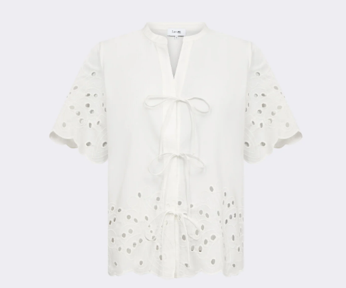 Grolet knytblus hålbroderi vit
