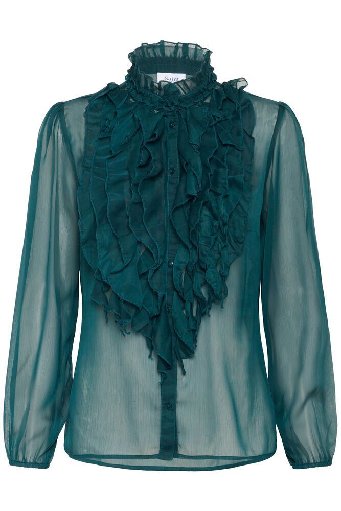 Lilja Crinkle blus lång ärm Grön Petrol