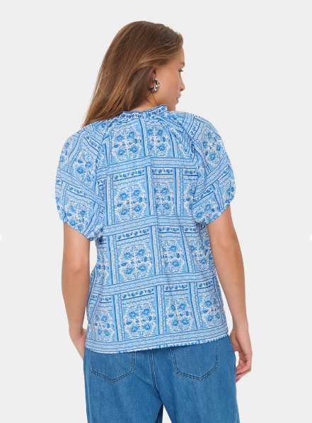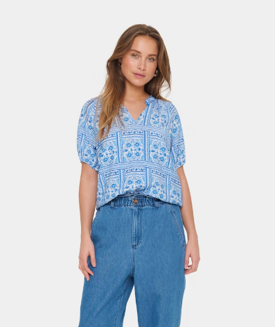 Kaisa blus mönstrad blå/vit
