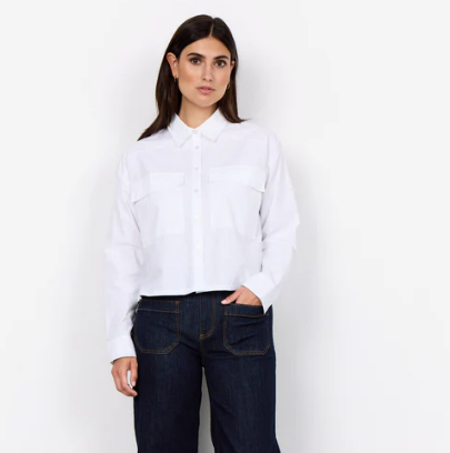Netti skjorta kort vit med fickor