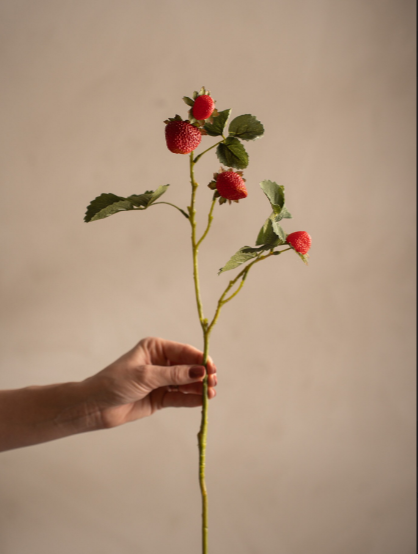 Denna vackra Jordgubbskvist med detaljrika bär och blad är ett somrigt och livfullt inslag! Denna konstgjorda kvist är perfekt för att addera en touch av natur till ditt hem. Placera den i en vas eller använd den som en del av ett större arrangemang.