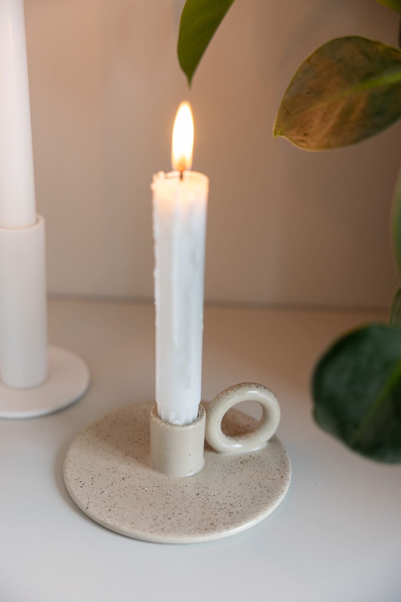 Kronjusstake i glaserad keramik. Märket Storefactorys tolkning av den klassiska kammarljusstaken förenar tidlös design med modern stil. Med sin vackra form och jordnära sandfärg blir den ett vackert inslag i varje rum och sprider en varm och inbjudande atmosfär.