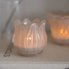 Ljunga beige ljuslykta