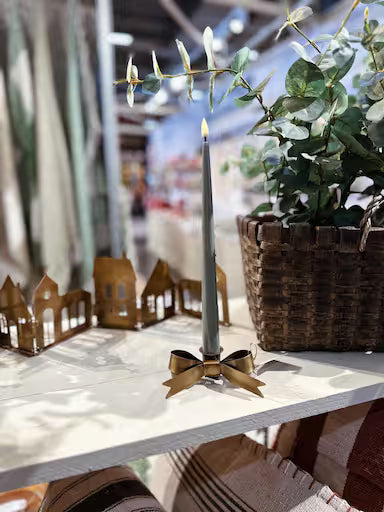 En dekorativ och vacker ljushållare i antik mässingsfinish, formad som en rosett. Denna unika ljushållare är mer än bara en praktisk accessoar - den är ett litet konstverk som ger varje rum en touch av lyx och förfining.