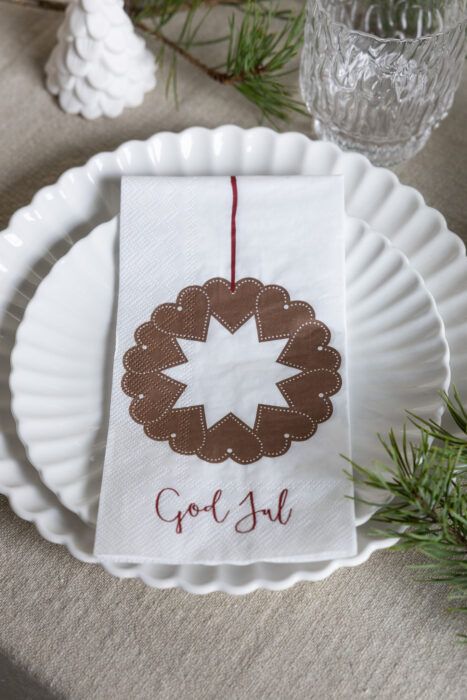 Papperservett med julmotiv. En stilren servett som passar fint till julens alla dukningar. En förpackning innehåller 16 servetter.