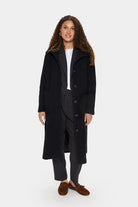 Denna långa kappa för dam har en tidlös ståkrage, knäppning och skärp vid midjan som ger en bekväm och figurnära passform. Passar flera tillfällen. Från Saint Tropez.