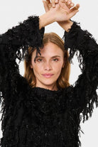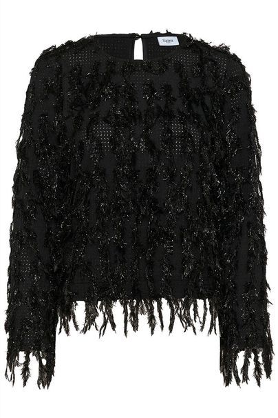 Uppdatera garderoben med denna blus för dam med avslappnad passform, fransade glittriga detaljer, rund hals och långa ärmar. Perfekt för både vardag och fest, med komfort i fokus. Från märket Saint Tropez.