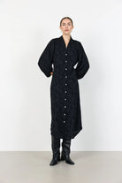 Ovette klänning är tillverkad av 100% polyester. Denna eleganta klänning har en V-ringning med knappstängning och är tillverkad i tyg med ett strukturerat mönster. Kombinera den med enkla accessoarer och snygga sandaler för en komplett look. Från Levete Room.