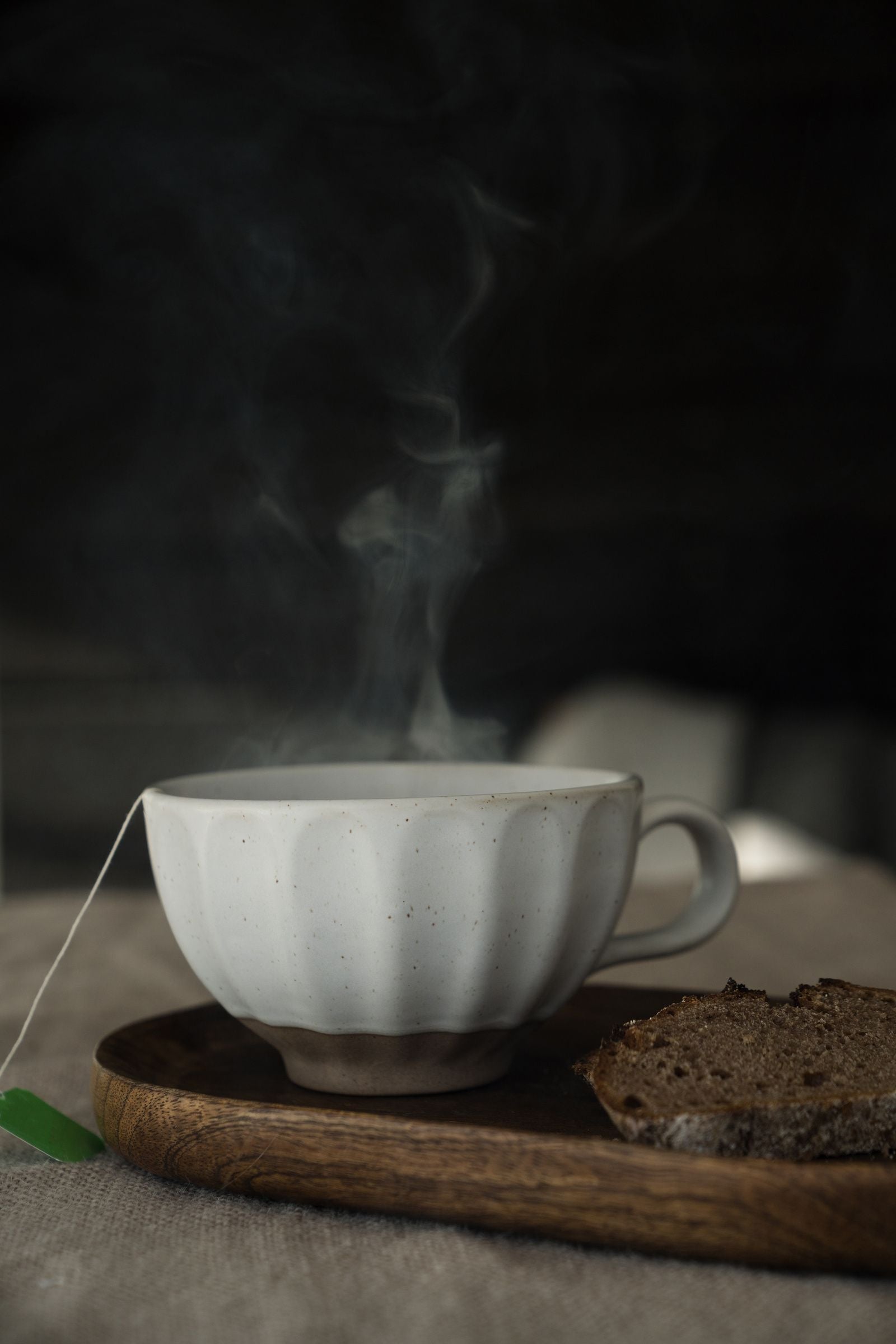 En tekopp i mjukt formad keramik med naturlig glasyr. Skön att hålla i händerna – för stunder då du vill landa i lugnet.