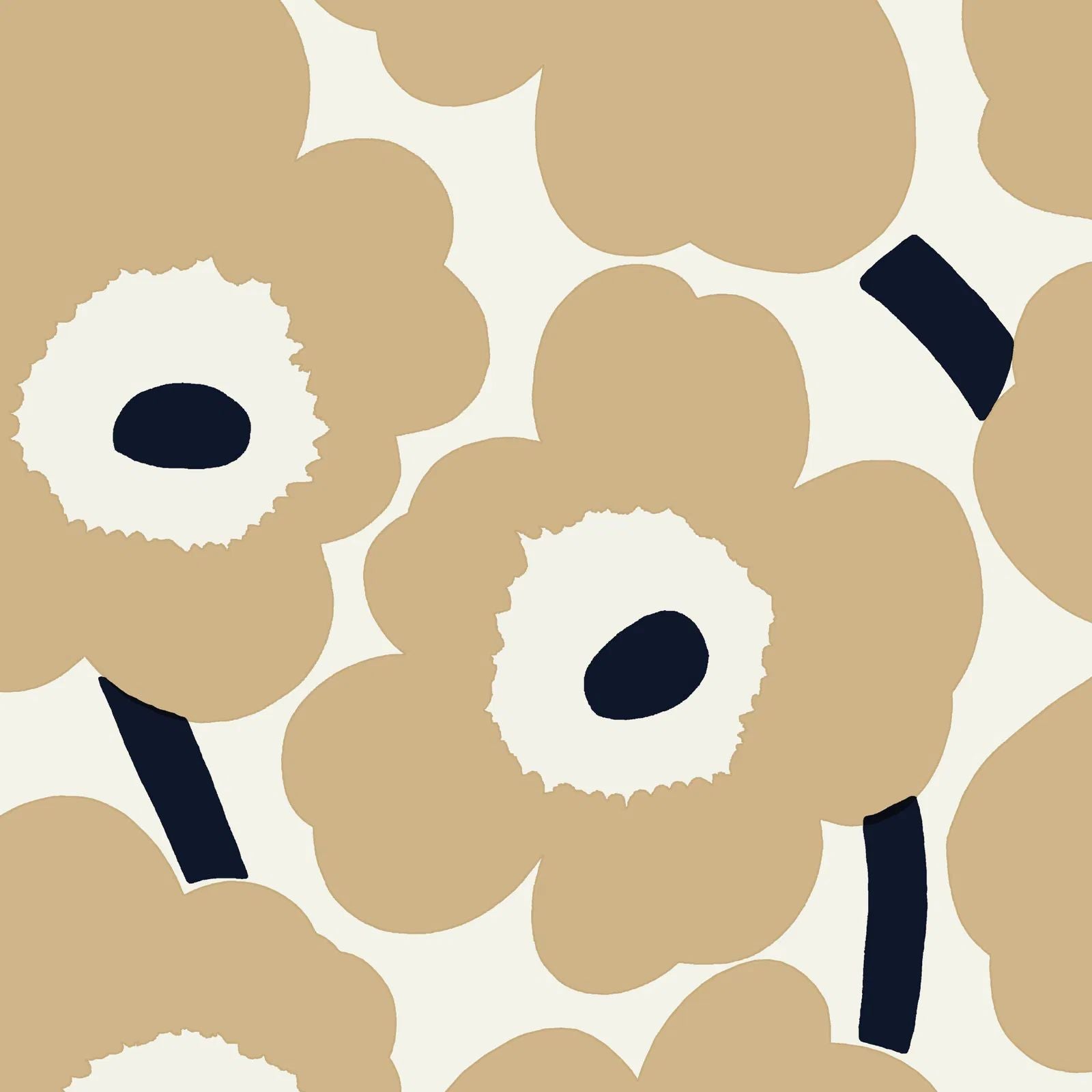 Marimekko Unikko sand servett med klassiskt vallmomönster i varma toner. Perfekt för stilfulla dukningar.