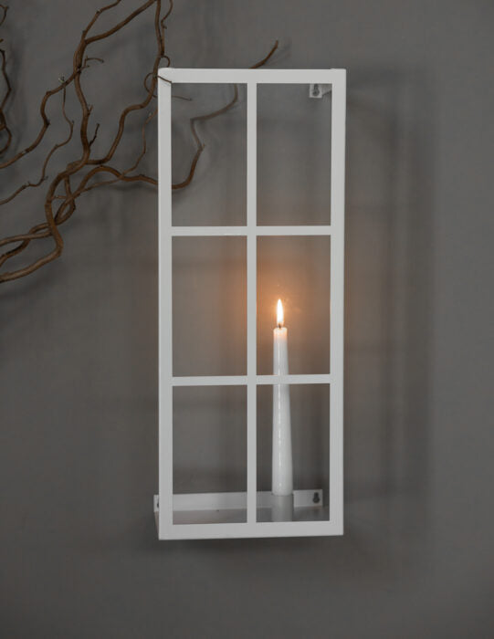 Väggljusstake med magnetisk ljushållare som gör att du kan välja var du placerar ditt ljus på brickan. Ha den bara med ett ljus eller dekorera den med en vas bredvid. Tillverkad i greige metall.