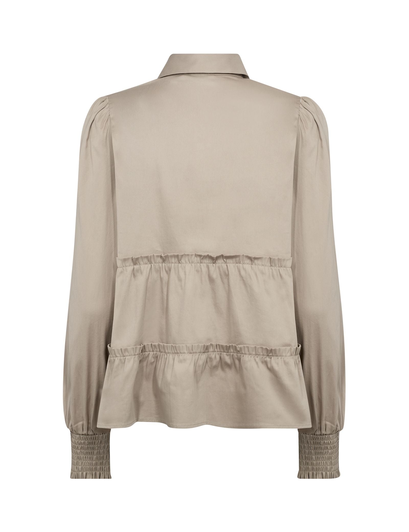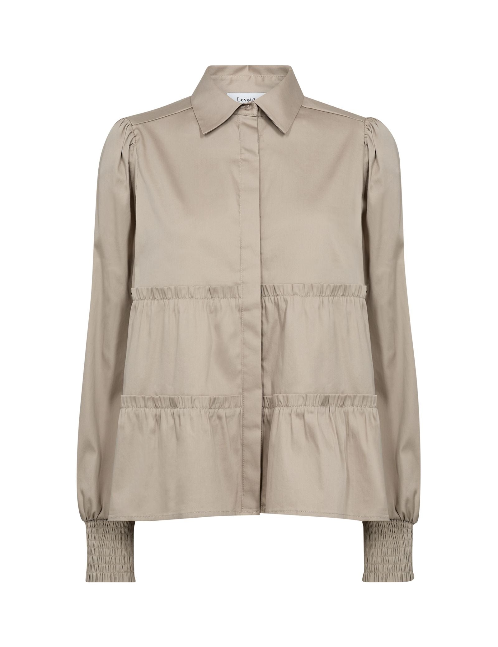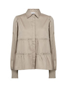 Isla skjorta är en feminin skjorta tillverkad av 65% ekologisk bomull, 30% polyamid och 5% elastan. Den har en klassisk krage, knappstängning framtill, långa ärmar och unika rynkade detaljer för textur. Matcha den med skräddarsydda byxor eller en kjol för en snygg look.