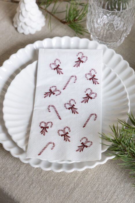 Papperservett med julmotiv. En stilren servett som passar fint till julens alla dukningar. En förpackning innehåller 16 servetter.