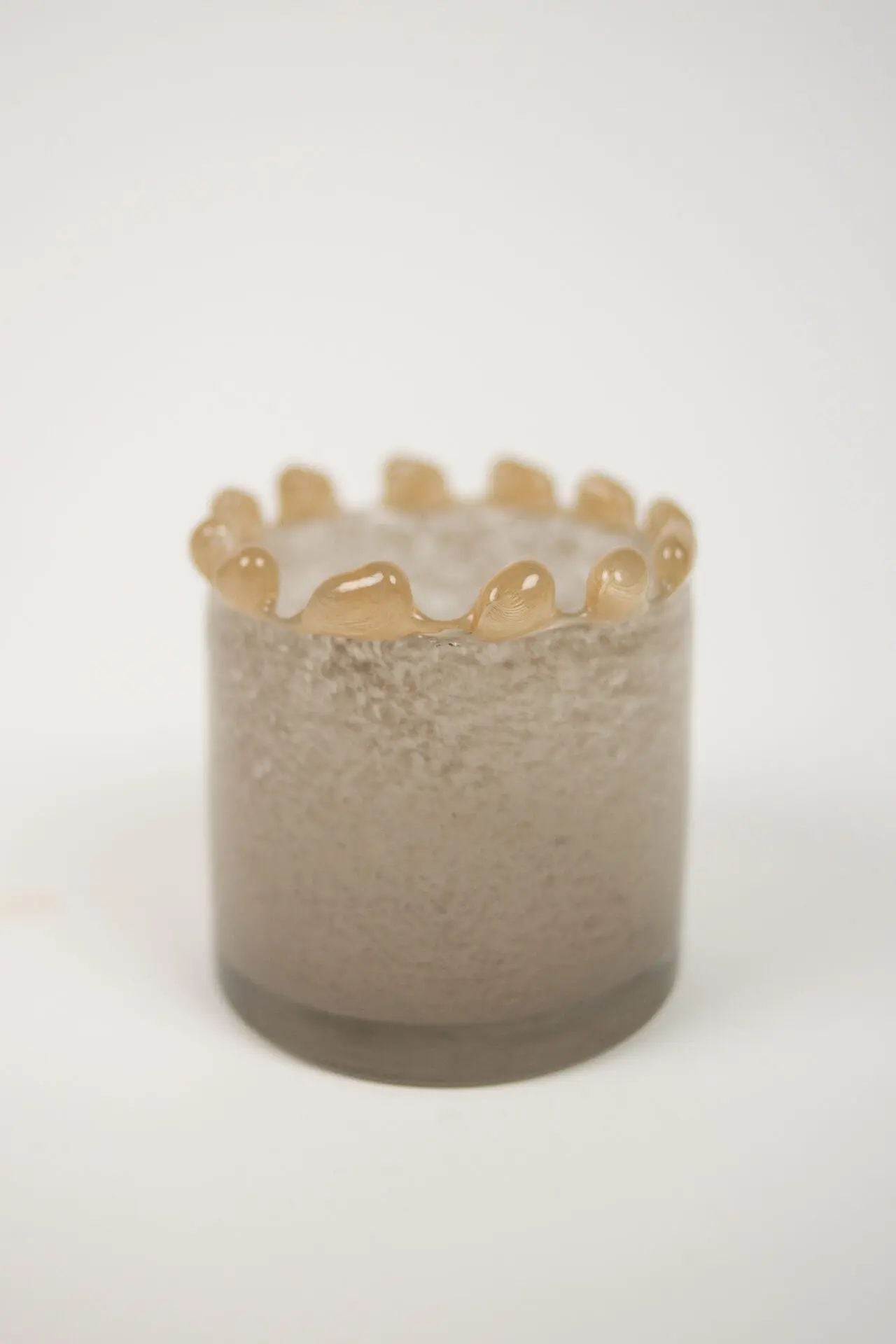 En lyxig glaslykta med dekorativa prickar längs kanten, som ger en lekfull och glad känsla.
