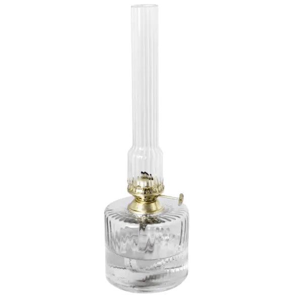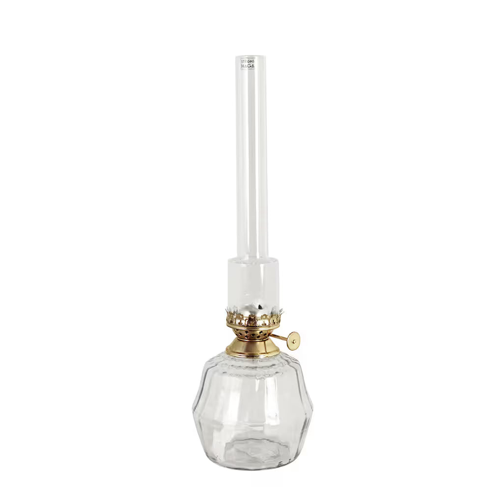 Fotogenlampa Rak Klarglas ribbad mässing stor