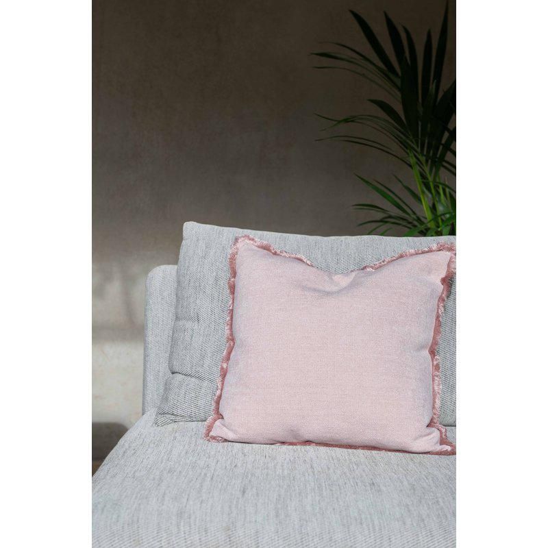 Enfärgat kuddfodral med en fin, subtil lyster, runtom löper en dekorativ, nätt frans som tillför en trendig och sofistikerad känsla.