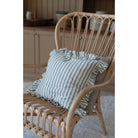 Ett kuddfodral med volang i härliga färger, som är tillverkad av återvunnen bomull och återvunnen polyester, vilket gör den både miljövänlig och hållbar. Den klassiska randen ger kuddfodralet en tidlös charm.