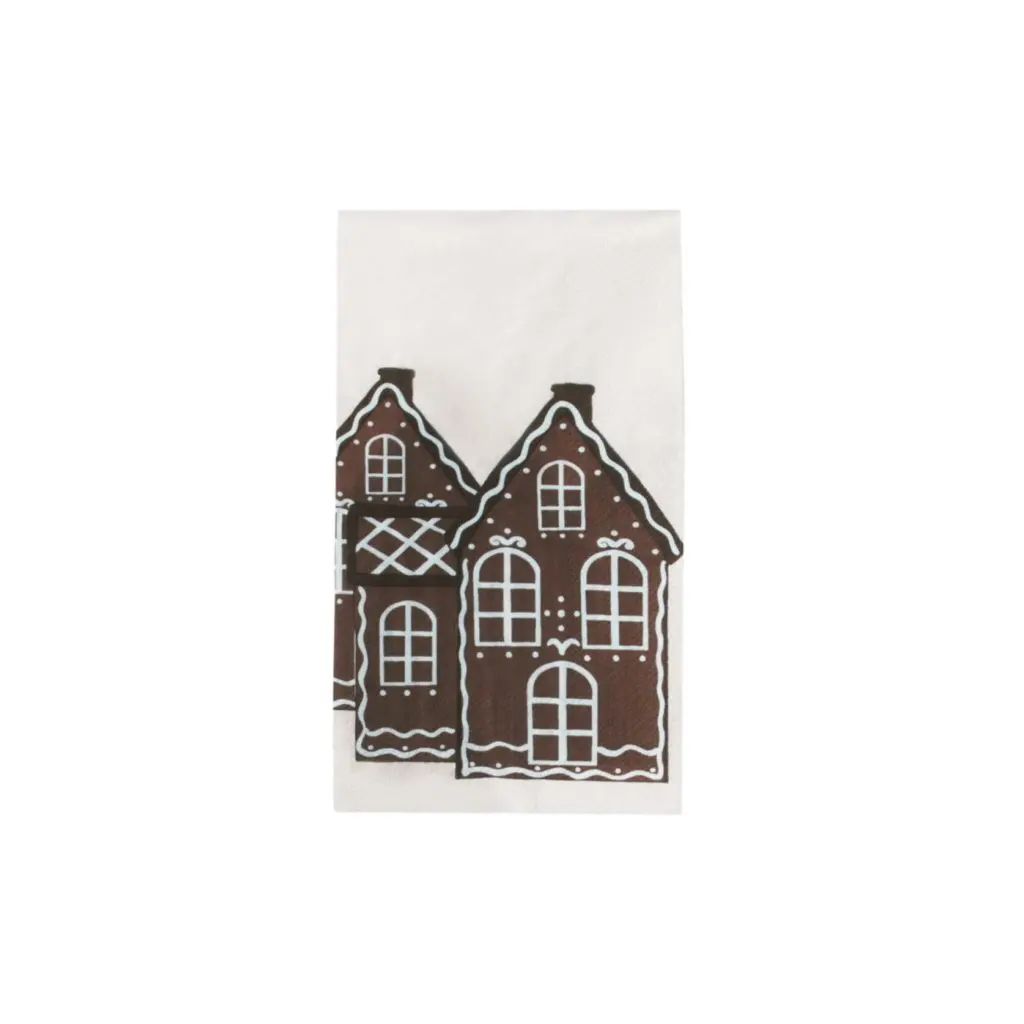 En elegant servett med pepparkakshus som motiv kommer att göra din dukningen komplett, lyfta julkänslan och få bordet att bli stilrent smyckat.