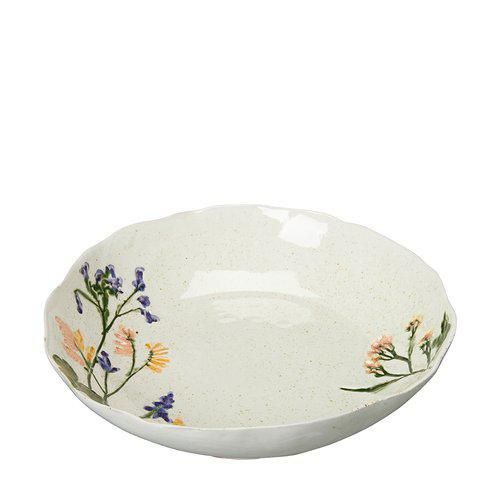 Malva skål är fin att ha som dekoration eller som ett uppläggningsfat. Skålen är gjord i porslin med ett blommönster.