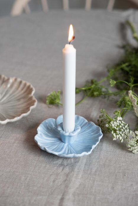 Keramikljusstake i form av en blomma. Detta vackra konstverk är både dekorativt och funktionellt. Placera ljusstaken i mitten av matbordet för att skapa en mysig känsla, eller ställ den bredvid sängen och använd den även som förvaring för smycken.