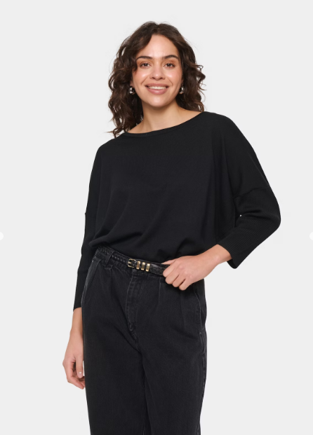 Finstickad svart tröja med 3/4 ärm. Från Saint Tropez.