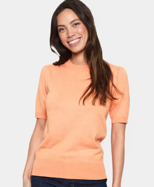 Finstickad tröja tröja från Saint tropez med kort ärm. Rund, ribbad halsringning med ribbad nederkant.