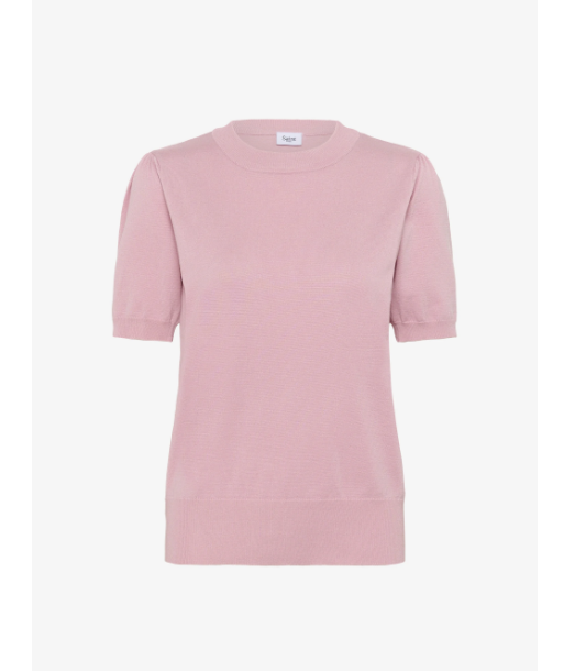Finstickad rosa tröja från Saint tropez med kort ärm. Rund, ribbad halsringning med ribbad nederkant.