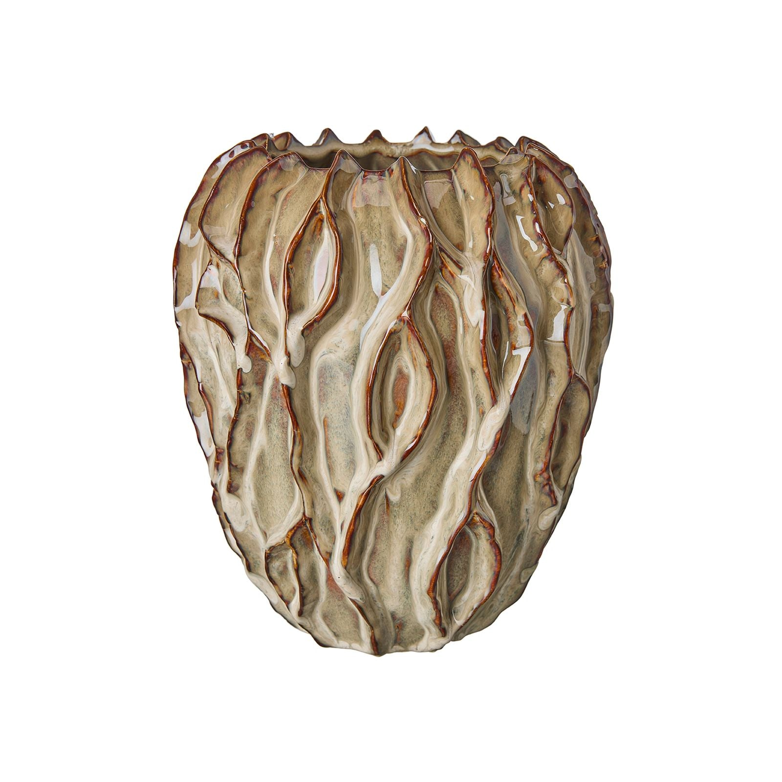 Maud är en elegant vas från Wikholm Form i glaserat stengods med handgjord känsla och organiskt mönster. Den mjuka, neutrala färgtonen gör den till en mångsidig inredningsdetalj som lyfter både snittblommor och torkade arrangemang.