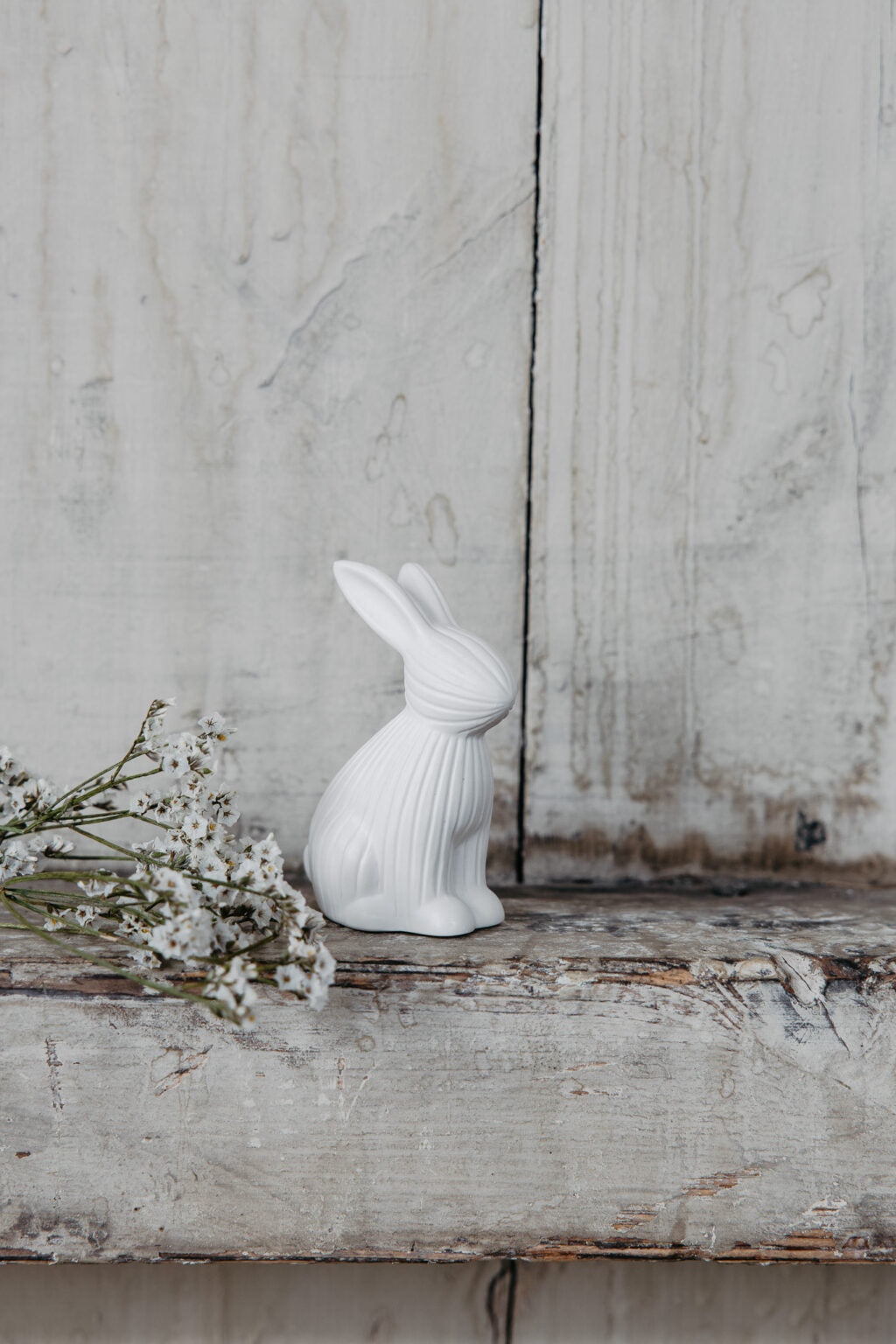 Liten dekorativ kanin i matt keramik. Dekorera ditt hem till påsk eller använd den som dekoration i påskarrangemanget. Passar utmärkt tillsammans med våra andra påskprodukter.