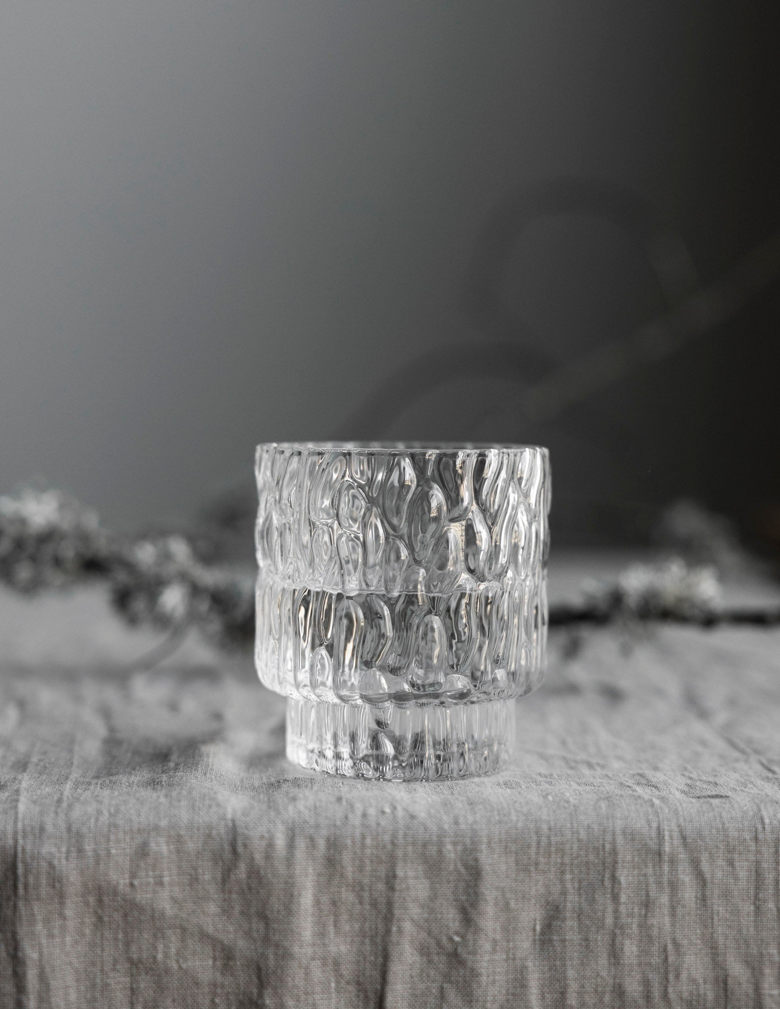 Dricksglas i tidlöst räfflat glas. Fint i sin enkelhet i vardagen, men även att duka med till festligare tillfällen. Finns i 2 olika storlekar med matchande karaff.